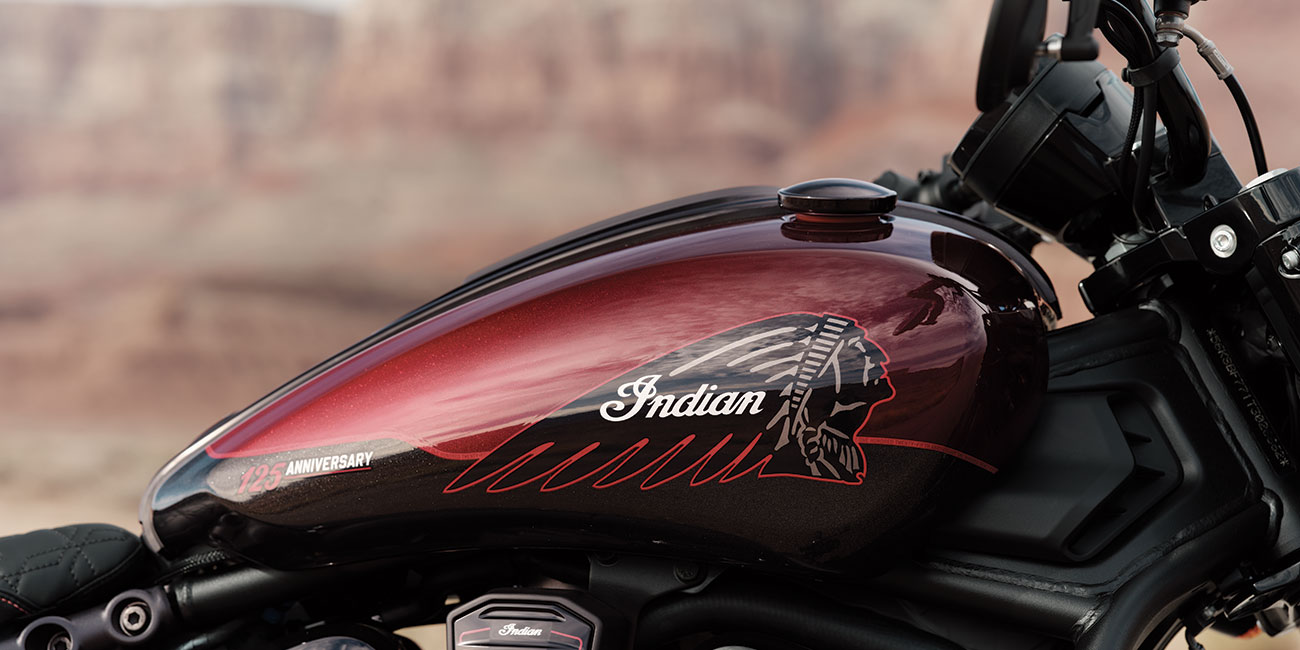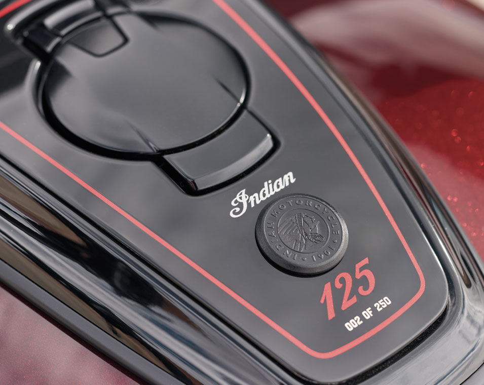 Jedes Modell der 125 Jahre Jubiläumskollektion repräsentiert ein Stück der Geschichte von Indian Motorcycle. Zusammen bilden sie eine Produktpalette, die mit Bedacht und ohne Kompromisse zusammengestellt wurde. Jede Linie, jede Oberfläche und jedes Detail spiegelt die Weigerung wider, sich anzupassen oder sich zurückzuhalten.