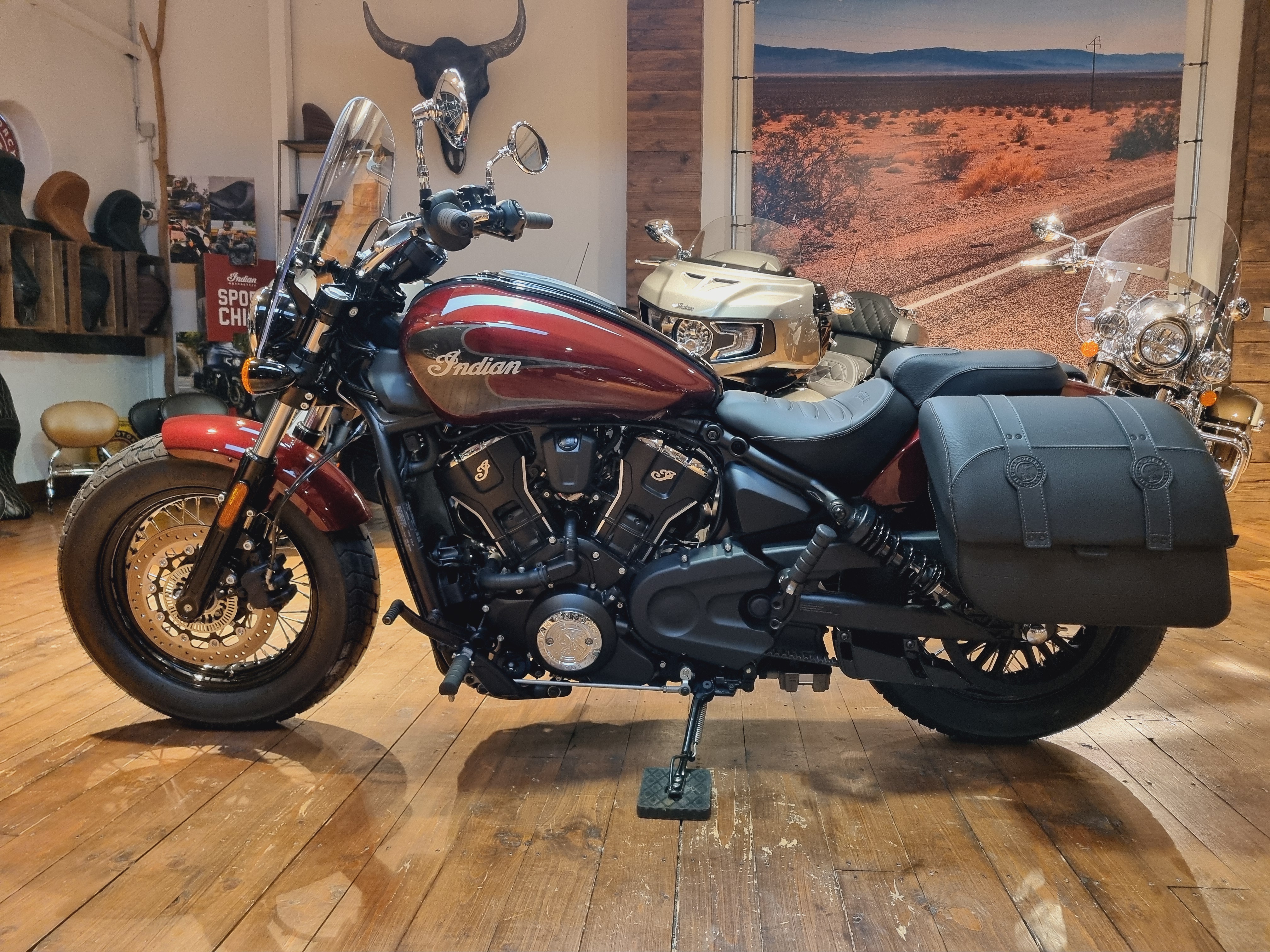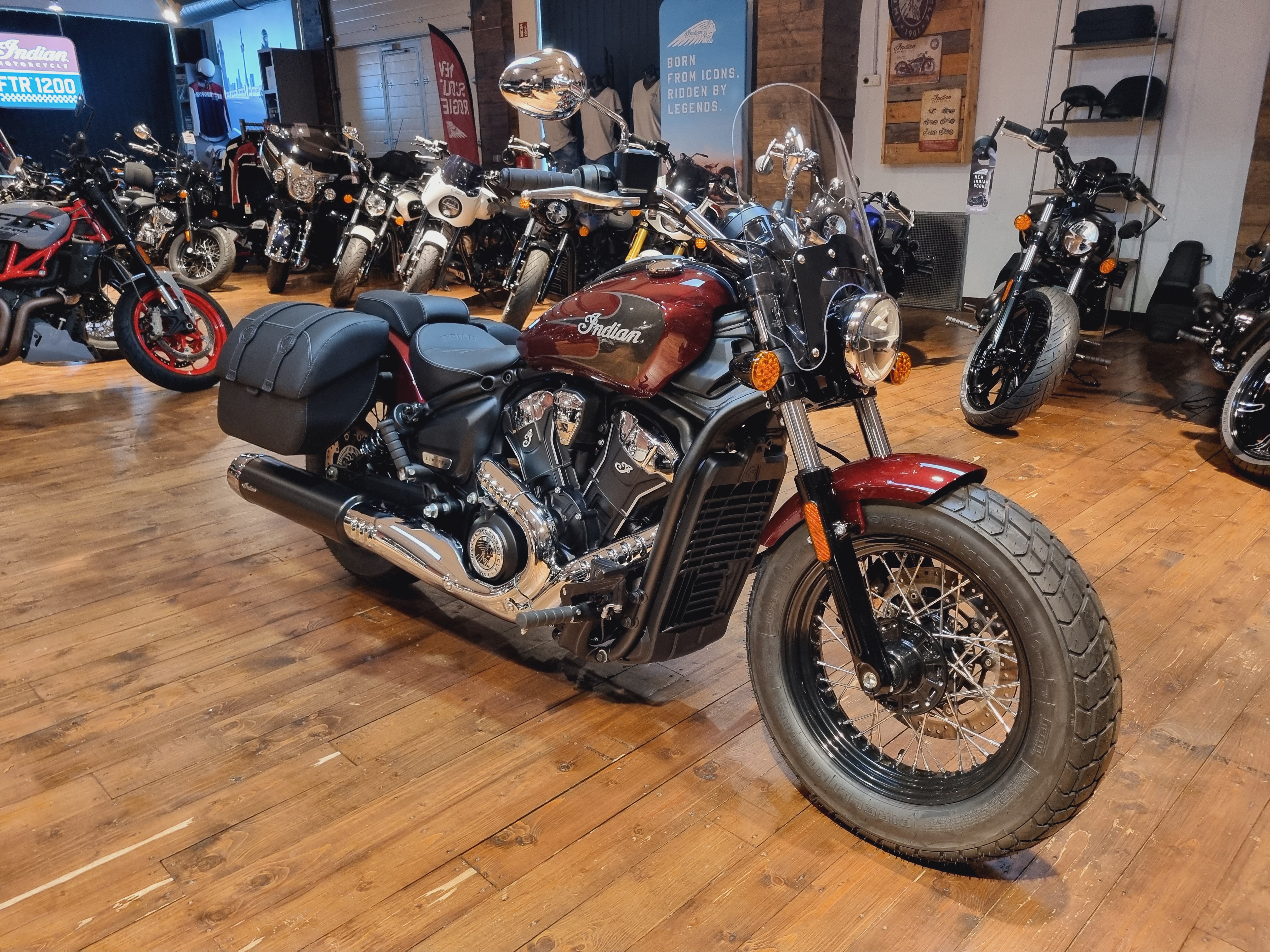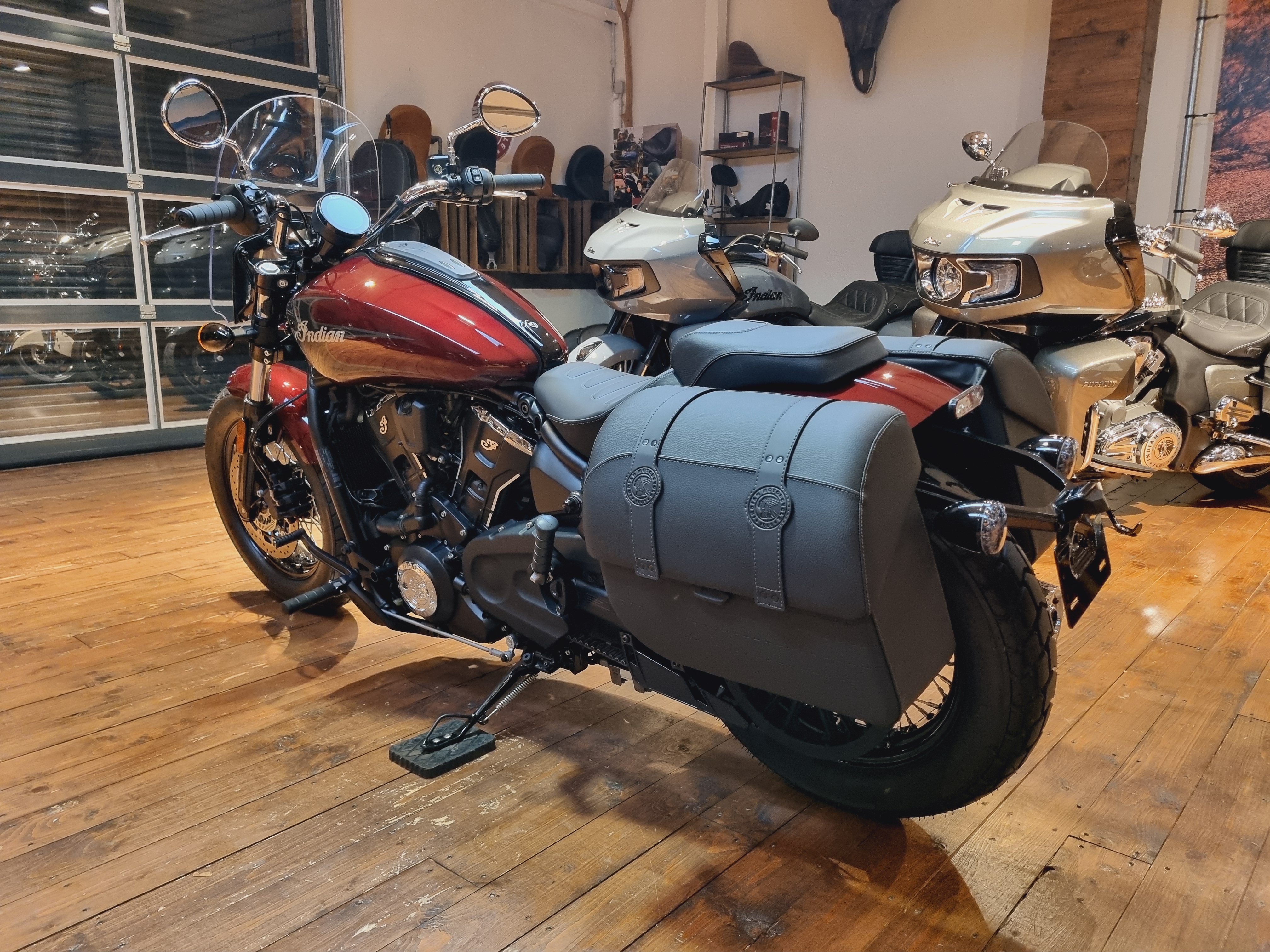 Motorrad: Die Neue Super Scout. Wenn das Ziel die offene Straße ist, muss man sicherstellen, dass keine Kompromisse gemacht oder Details übersehen werden. Satteltaschen, Drahtspeichenräder, Windschutzscheibe und Soziusplatzgehören zur Standardausstattung.